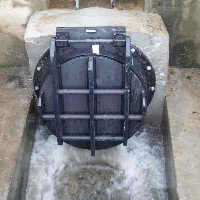 拍門是安裝在江河邊排水管出口的一種單向閥,當(dāng)江河潮位高于出水管口,且壓力大于管內(nèi)壓力時(shí),拍門面板自動(dòng)關(guān)閉。以防江河潮水倒灌進(jìn)排水管道內(nèi),防止汛情發(fā)生,對(duì)人身財(cái)產(chǎn)安全是一道重要保障!!!